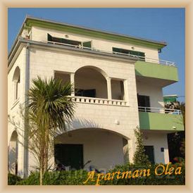 Apartmány Olea se nachází v letovisku Marina, v blízkosti centra (100m) ve velmi klidné lokalitě, jen několik metrů od moře. Z větších měst je nejblíže Trogir. V nabídce máme 2 apartmány pro 4 osoby a jeden apartmán pro 6 osob. Všechny apartmány jsou vybavené TV/sat a klimatizací.