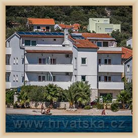 Villa se skládá z 14 nově vybavených apartmánů, které jsou vzdáleny 10m od moře. Před domem je velké parkoviště.